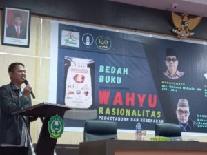 rmbgtlo, Adalah Ketua Rumah Moderasi Beragama (RMB) IAIN Sultan Amai Gorontalo Dr. Arfan Nusi, M.Hum menyampaikan Bahwa RMB adalah rumah kita semua, rumah bagi terwujudnya perdamaian sebagaimana agama yang hadir untuk menciptakan kemashlahatan manusia. Tegasnya dalam sambutan kegiatan Bedah Buku dan Diskusi ; Wahyu Rasionalitas Pengetahuan dan Kebenaran karya Mirza Tahir Ahmad seorang Tokoh sentral Jemaat Ahmadiyah Dunia. Hadir sebagai narasumber Drs. Mahmud Mubarik, MM Pengurus besar Jemaat Ahmadiyah Indonesia, Dr. Sofyan Kau, M.Ag (Wakil Rektor II IAIN Sultan Amai Gorontalo) dan Dr. Samsi Pomalingo, MA Dosen UNG Gorontalo. Kegiatan yang di laksanakan di Aula Rektorat IAIN Gorontalo Senin, 05 JUni 2023 di pandu oleh Mukhtar Miolo, M.Pd