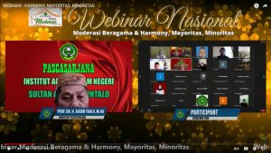 Harapan ini terpencar dari sambutan Plt Rektor IAIN Sultan Amai Gorontalo Prof. Dr. H. Kasim Yahiji, M.Ag saat membuka dengan resmi Webinar Nasional Rumah Moderasi Beragama IAIN Sultan Amai Gorontalo Rabu, 10 November 2021. Selaku Plt Rektor IAIN Sultan Amai Gorontalo Webinar dengan tema Harmoni Mayoritas Minoritas ini saya mendorong beragamalah dengan baik. Minoritas juga berhak hidup, hargailah nyawa dan hidup mereka. Sakit kalau kita pukul dan menderita jika kita kucilkan. Mereka yang bukan saudaramu dalam iman adalah saudaramu dalam kemanusiaan. Lewat Webinar Nasional ini, kita akan lebih tahu bagimana fenomena mayoritas dan minoritas beragama. Apalagi keempat pemateri merupakan repsesentasi dari empat wilayah di Indonesia. Pak Surya Adi Sahfutra dari Sumatra sampai Pak Syahrul dari Papua. Pasti kita akan mendapatkan cerita dan ilmu dari pengalaman beragama mayoritas minoritas di tanah Sumatra dari materi Pak Surya Adi Saputra, begitu juga dengan pengalaman-pengalaman narasumber lainnya. Terakhir saya ingin sampaikan bahwa jangan pernah merasa superior karena kita mayoritas, dan jangan merasa inferior karena kita hanya minoritas. Dibawah kibaran merah putih kita semua sama, warga Negara Indonesia. Imbuh Rektor diakhir sambutannya.